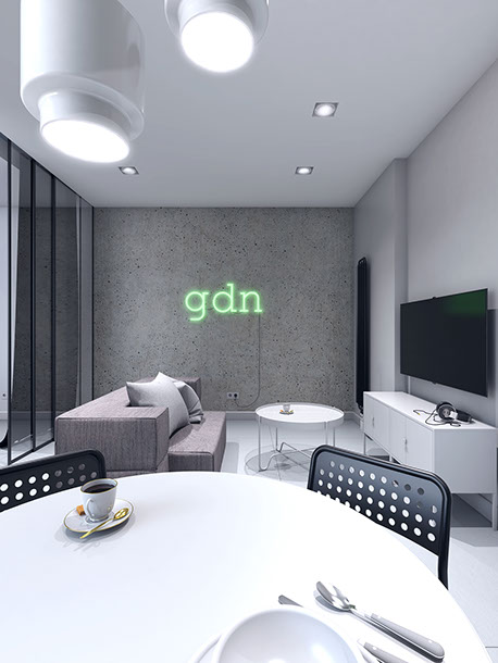 Mieszkanie składające się z dwóch niezależnych lokali w inwestycji Garden Gates w Gdańsku. Założenie miało na celu przebudowę mieszkania na apartamenty służące wynajmowi wakacyjnemu.