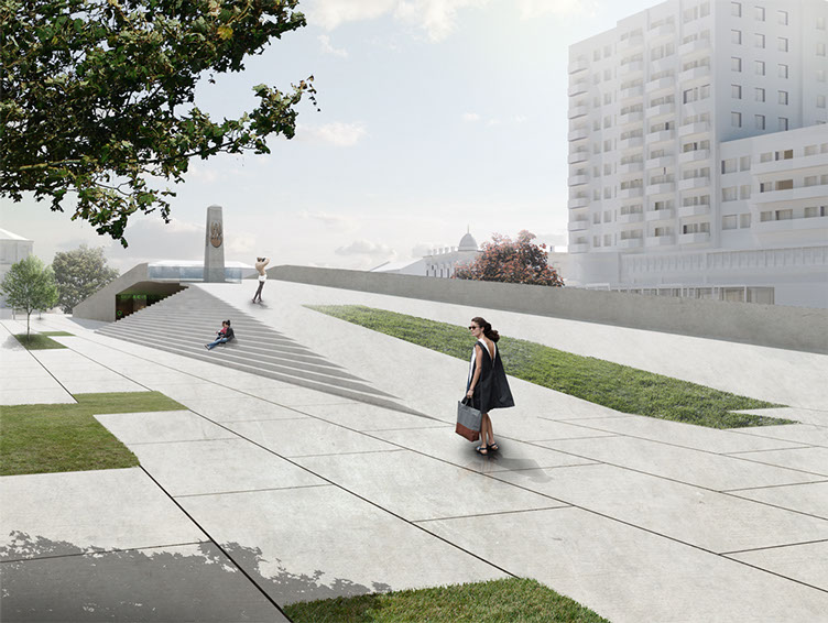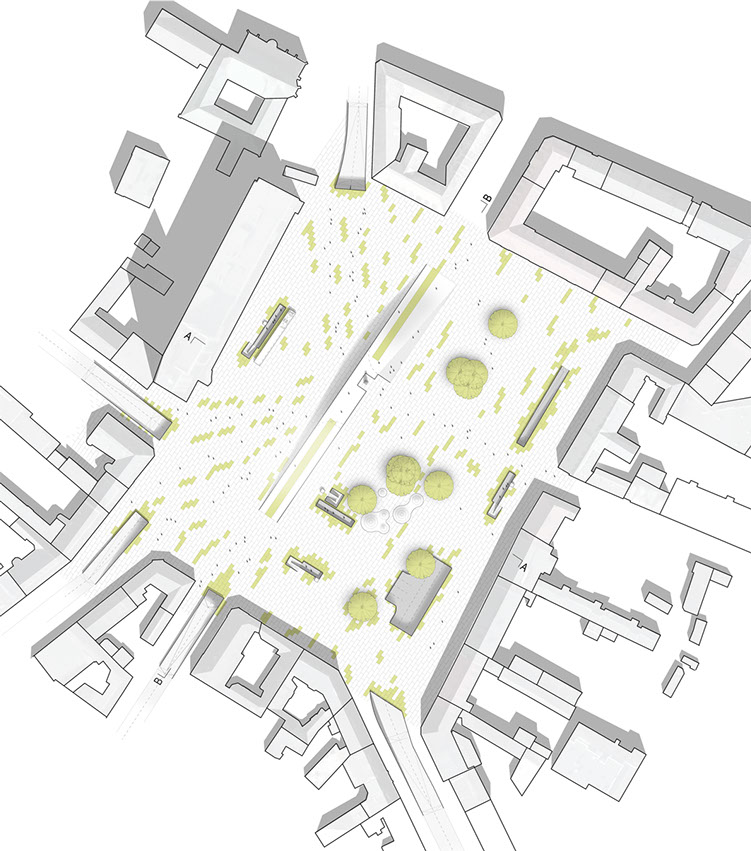 Projekt nowej nawierzchni zagospodarowania placu. Wprowadzenie ruchu kołowego pod ziemię pozwoli na wydzielenie powierzchni dla pieszych i stworzy nowe, bardziej funkcjonalne centrum miasta. Jednocześnie zakorkowane wcześniej ulice nabiorą lepszej przepustowości.