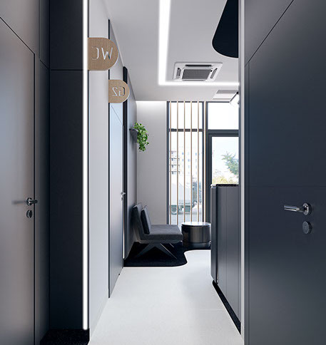 Realizacja: 2020 Projekt wielobranżowy trzech gabinetów stomatologicznych w Gdańsku dla klinki Esthetic Dental Studio na gdańskim Jasieniu.