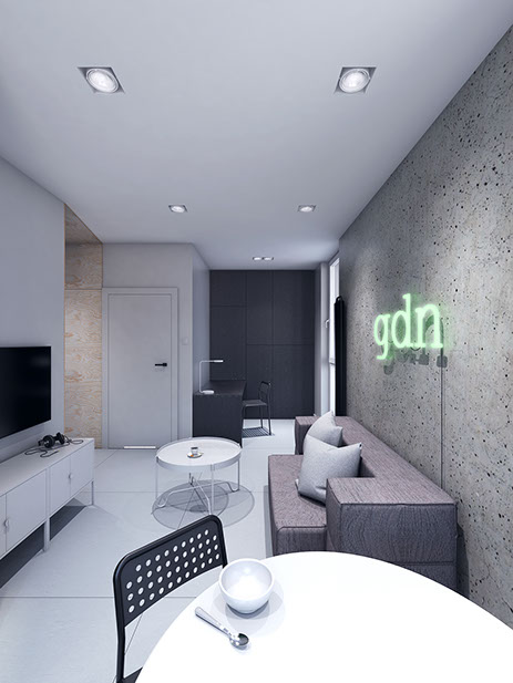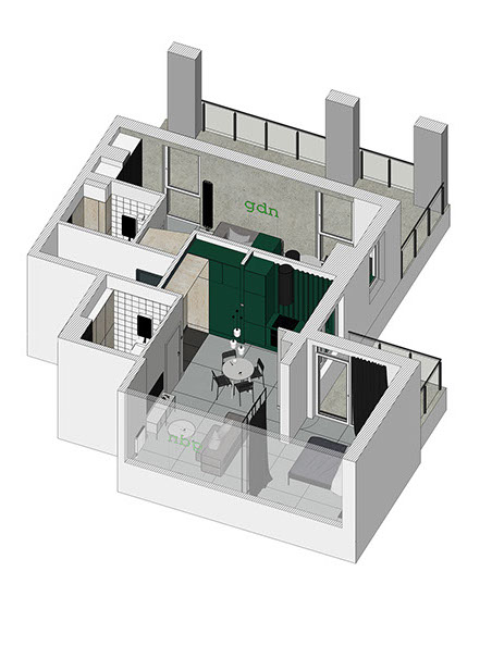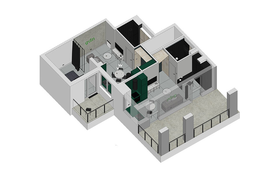 Mieszkanie składające się z dwóch niezależnych lokali w inwestycji Garden Gates w Gdańsku. Założenie miało na celu przebudowę mieszkania na apartamenty służące wynajmowi wakacyjnemu.