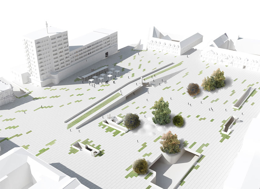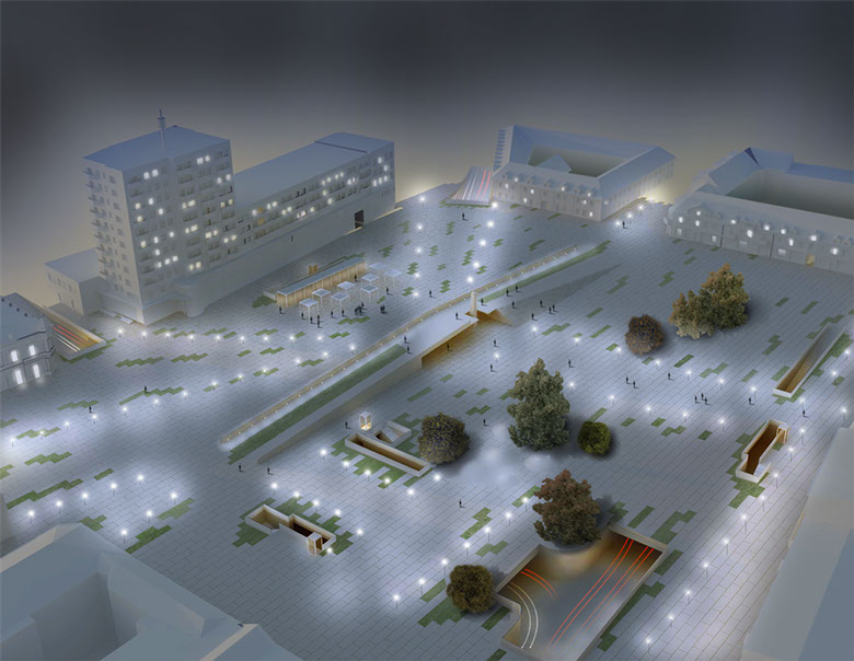 Projekt nowej nawierzchni zagospodarowania placu. Wprowadzenie ruchu kołowego pod ziemię pozwoli na wydzielenie powierzchni dla pieszych i stworzy nowe, bardziej funkcjonalne centrum miasta. Jednocześnie zakorkowane wcześniej ulice nabiorą lepszej przepustowości.